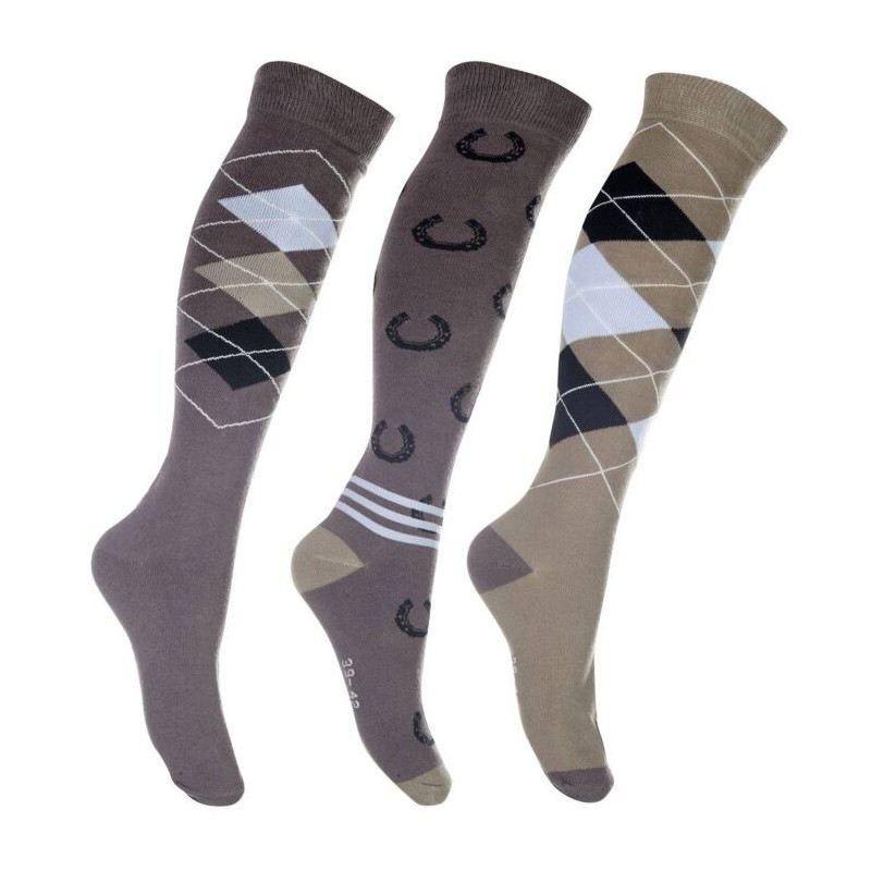 HKM Chaussettes Cardiff lot de 3 Marron/beige