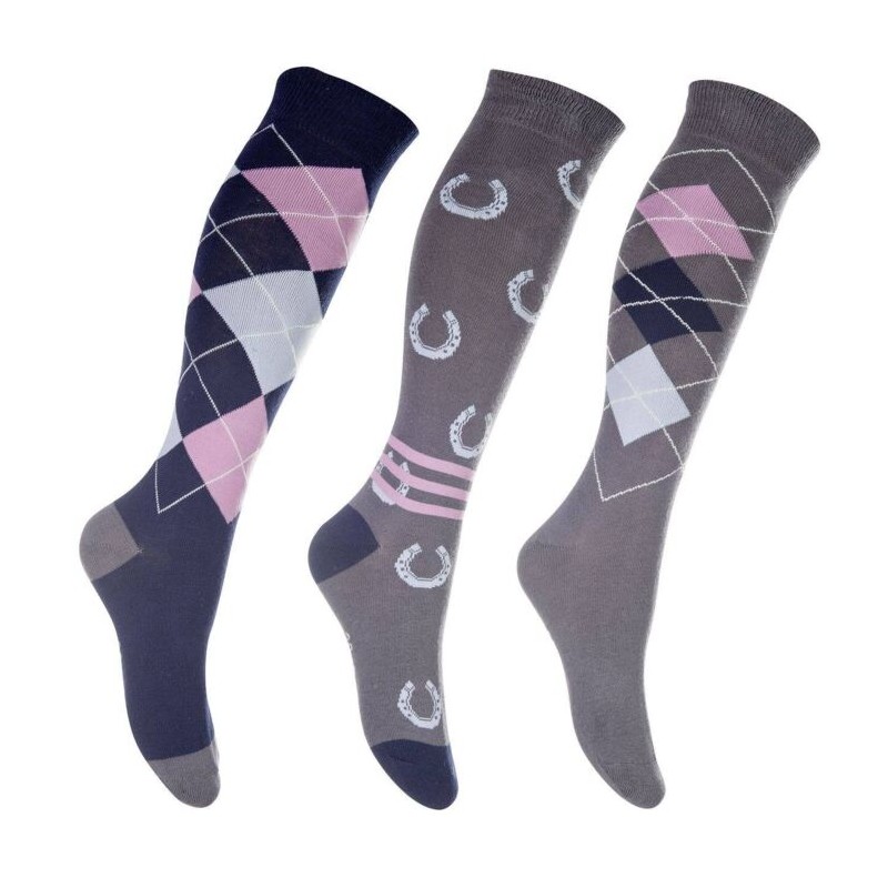 HKM Chaussettes Cardiff lot de 3 Bleu/gris