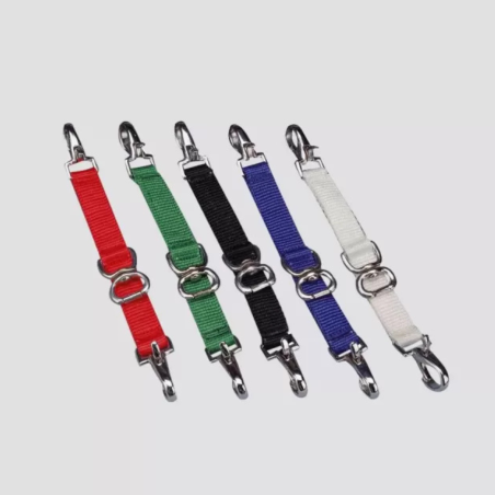 Cette alliance de mors en nylon, dotée d'un anneau central et de deux mousquetons d'attache, facilite le travail à la longe. Sa conception robuste assure une utilisation pratique et durable. Vendue à l'unité, elle nécessite un entretien simple : passez régulièrement une brosse douce pour éliminer les résidus et la poussière