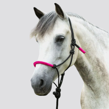 Le Licol éthologique en corde pré-nouée garantit un contact précis grâce à sa conception ergonomique et ses nœuds bien positionnés. La têtière et la muserolle sont doublées de corde souple entrelacée pour prévenir les frottements et assurer le confort de votre cheval, vendu avec sa longe épaisse de 2,30 m est parfaite pour les séances de travail à pied ou la manipulation quotidienne. Sa conception robuste et durable offre une prise en main confortable et sécurisée, complétant idéalement le licol éthologique