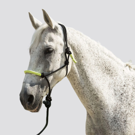 Le Licol éthologique en corde pré-nouée garantit un contact précis grâce à sa conception ergonomique et ses nœuds bien positionnés. La têtière et la muserolle sont doublées de corde souple entrelacée pour prévenir les frottements et assurer le confort de votre cheval, vendu avec sa longe épaisse de 2,30 m est parfaite pour les séances de travail à pied ou la manipulation quotidienne. Sa conception robuste et durable offre une prise en main confortable et sécurisée, complétant idéalement le licol éthologique