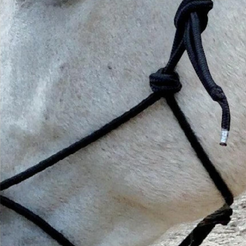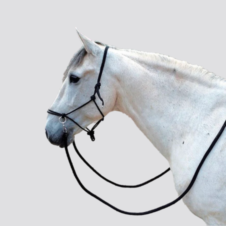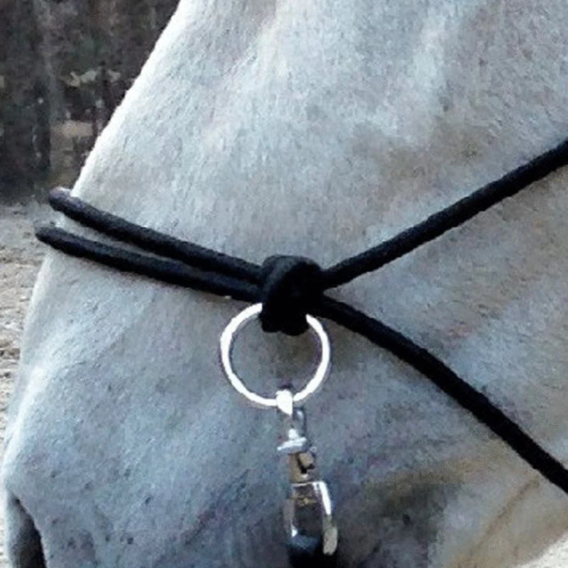 Le Licol éthologique pré-noué est équipé de 2 anneaux en acier chromé sur la muserolle pour fixer les rênes, offrant ainsi un contrôle précis. Vendu avec une paire de rênes amovibles de 3 m de long, il est pratique et adaptable grâce à ses mousquetons mexicains tournants en zinc chromé