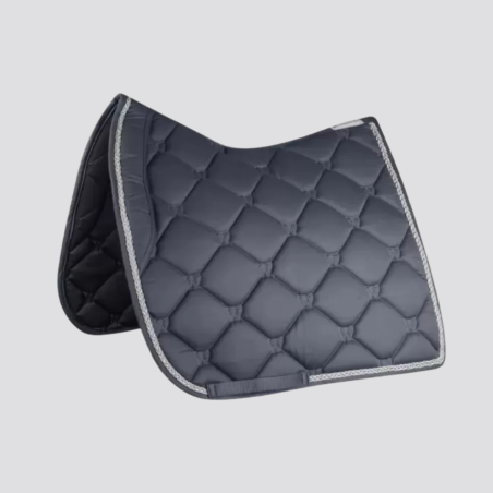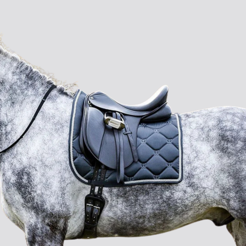 Ce tapis de selle élégant, avec son aspect satiné, est conçu pour offrir un style raffiné et une excellente qualité. Sa face inférieure respirante, associée à un rembourrage de 200 g/m² et 10 mm de mousse, garantit une répartition optimale de la pression pour le confort du cheval