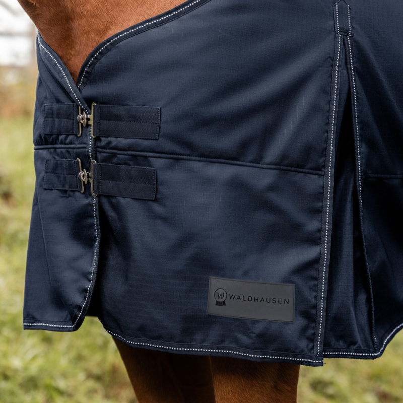 La couverture d’extérieur Nordic 300gr de Waldhausen offre un confort optimal à votre cheval lors des jours de grand froid. Sa fermeture double en T à l’avant assure un ajustement parfait, tandis que le liseré réfléchissant améliore la visibilité en conditions de faible luminosité. Conçue en ripstop 600 deniers, elle est respirante et imperméable (colonne d’eau 3000 mm), maintenant votre cheval au chaud et au sec. Possibilité d'ajouter un liner 100gr ou 200gr