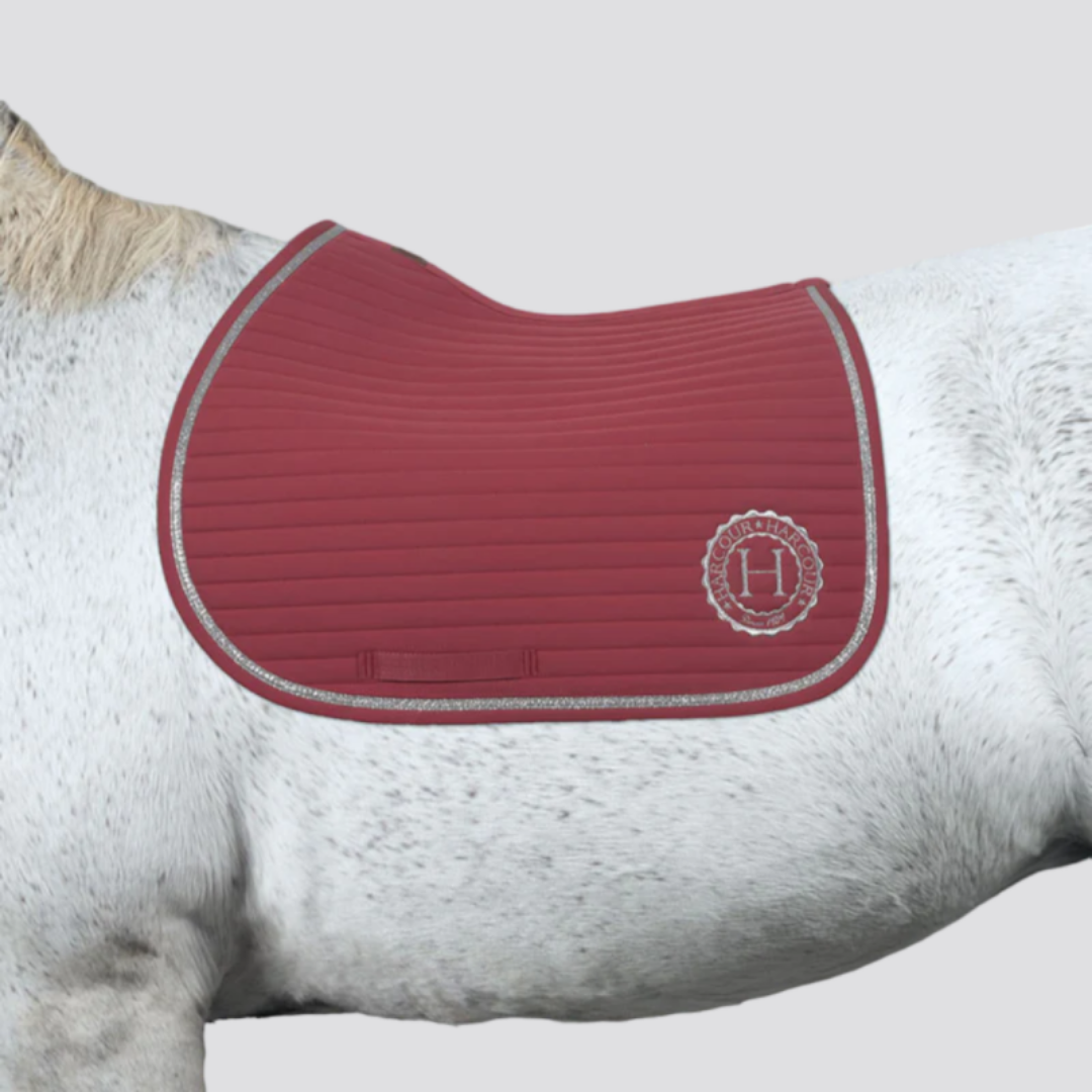 Le tapis de selle Harcour allie robustesse et confort grâce à sa coupe solide qui assure un maintien optimal sous la selle. Sa large dégarrotte s'adapte parfaitement à la morphologie du cheval, tandis que l'intérieur en coton gaufré offre une absorption optimale et une bonne respirabilité. Agrémenté d'un détail de liseré pailleté le long du tapis et d'un matelassage horizontal, il arbore fièrement le logo Harcour sur le côté gauche. Un petit patch en simili-cuir au niveau du garrot et plusieurs passages de sangles assurent une fixation sécurisée lors de l'utilisation. Nouveaux coloris !