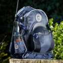Sac à dos “GROOM” HFI en nylon balistique déperlant, idéal pour les concours. Doté de multiples poches, dont une pour casque, il offre des compartiments pratiques pour organiser tout le matériel du cavalier et de son cheval, assurant une préparation optimale