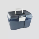 Le Coffre de pansage Hippo Tonic, bicolore et en polypropylène, est robuste avec un couvercle renforcé supportant jusqu'à 100 kg. Équipé d'un casier central et d'un porte-pinceau amovibles, il peut être verrouillé pour une sécurité optimale.